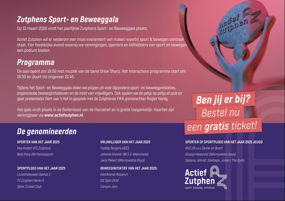 Als jullie op het gala aanwezig willen zijn dan kun je kaarten bestellen via https://actiefzutphen.nl/evenementen/sport-en-beweeggala#kaarten