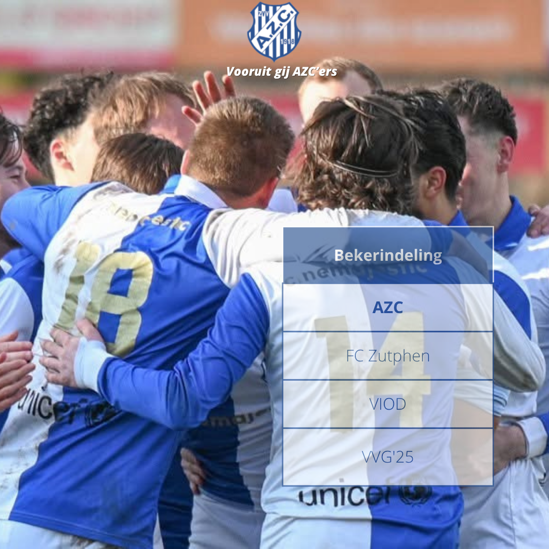 De KNVB heeft de indeling van de bekerpoules bekendgemaakt. AZC treft in de beker met VIOD en VVG’25 twee oude bekenden uit de competitie van vorig seizoen. En net als vorig jaar zijn de blauwwitten opnieuw ingedeeld bij stadsgenoot FC Zutphen.