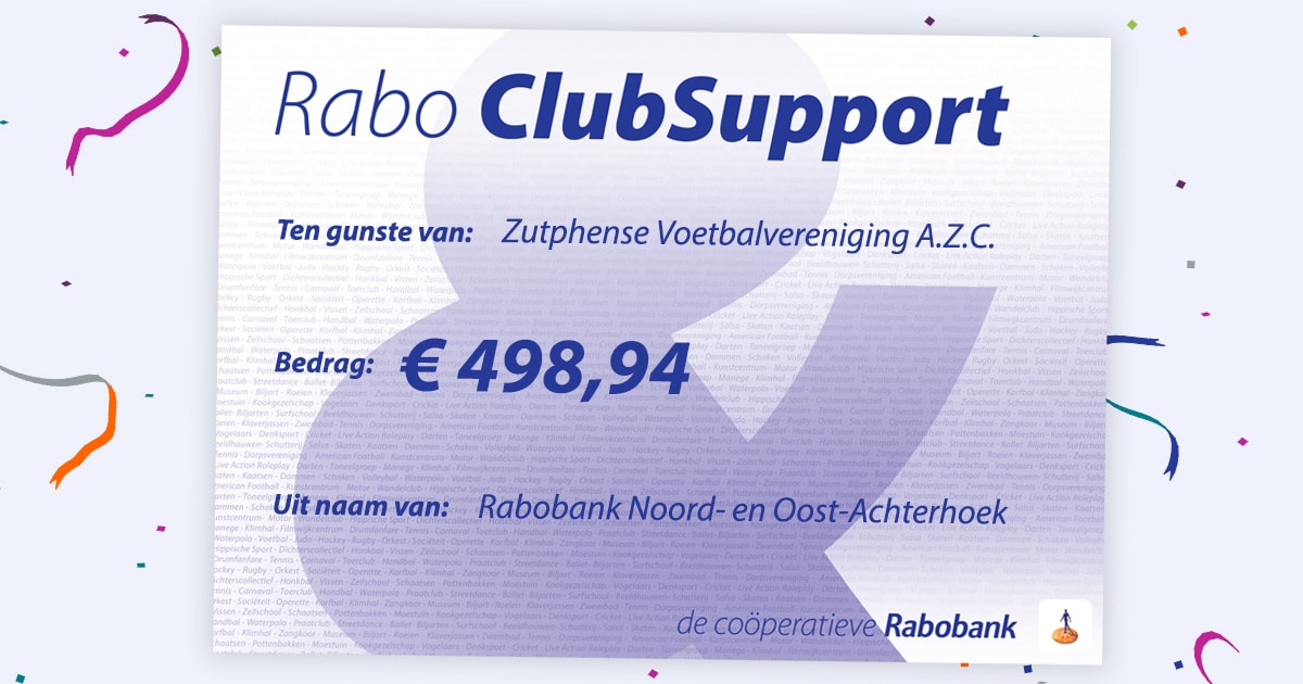 De Rabobank Club Support actie heeft AZC bijna € 500,- opgeleverd.