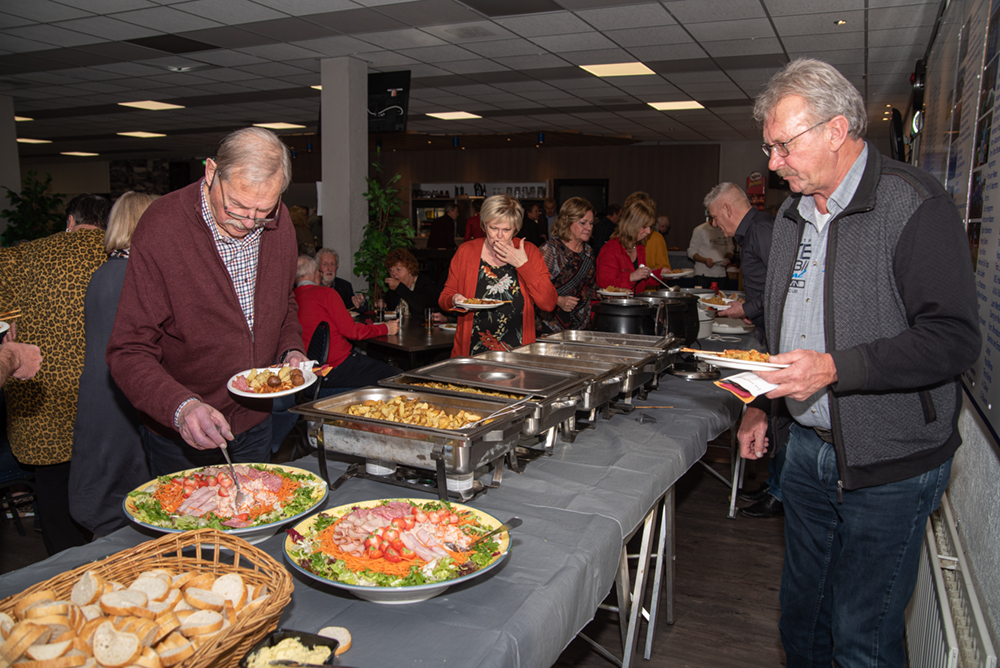 Het buffet, verzorgd door slagerij Lammers, was weer perfect geregeld. Ook de aanwezigheid van de ijskar van Talamini viel letterlijk en figuurlijk in de smaak.