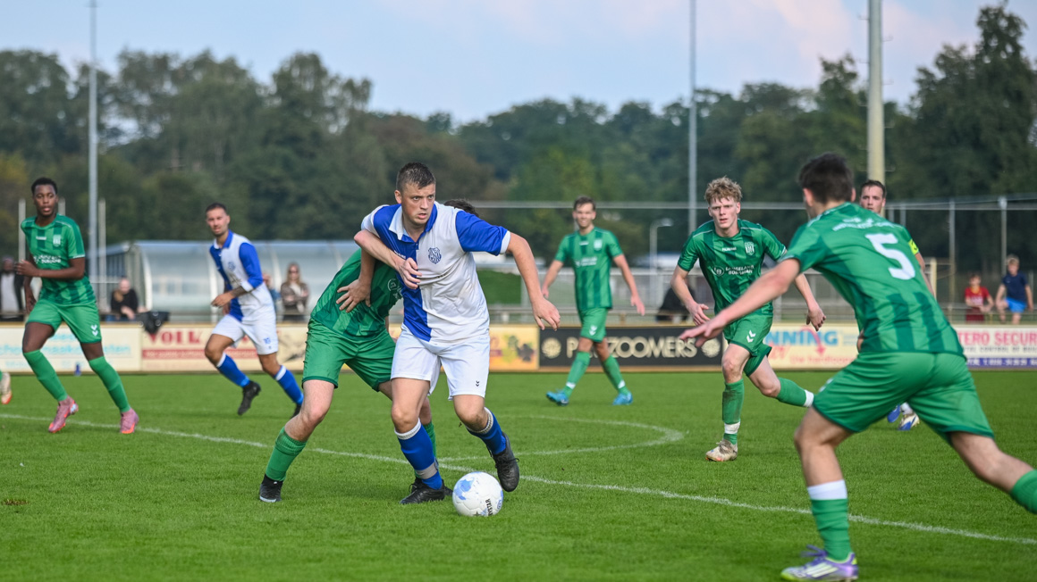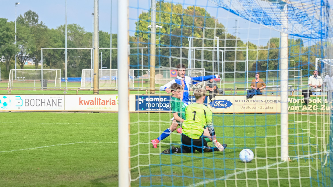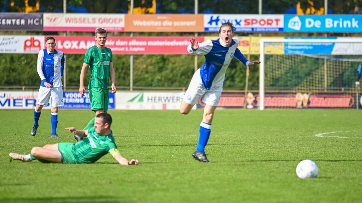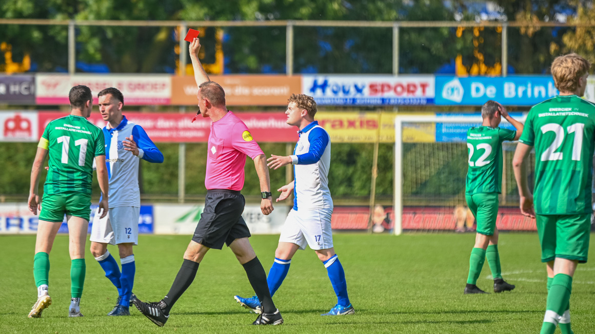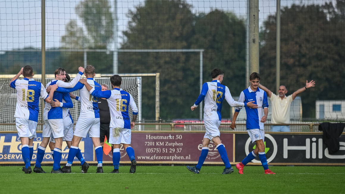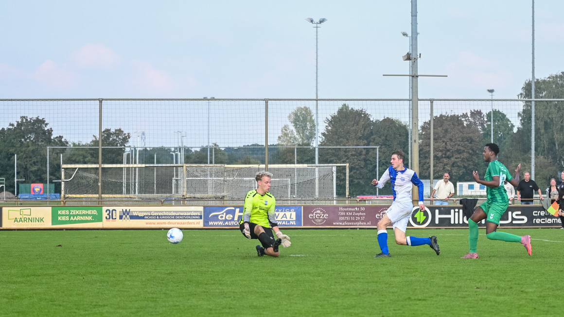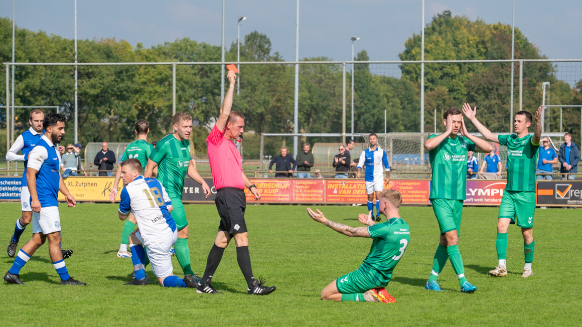 Zo won AZC een wedstrijd die eigenlijk nooit een wedstrijd werd. AZC werd in het zadel geholpen door twee vroege rode kaarten, terwijl het zelf ontsnapte een rode prent. In het restant van de wedstrijd hadden de Zutphenaren veel te veel kansen nodig om de score uit te breiden. Desondanks zijn de broodnodige drie punten binnen. Volgende week gaan de blauwwitten op bezoek bij Dalfsen. De Sallanders boekten een knappe overwinning bij titelkandidaat WKE (0-3), dus AZC is gewaarschuwd.