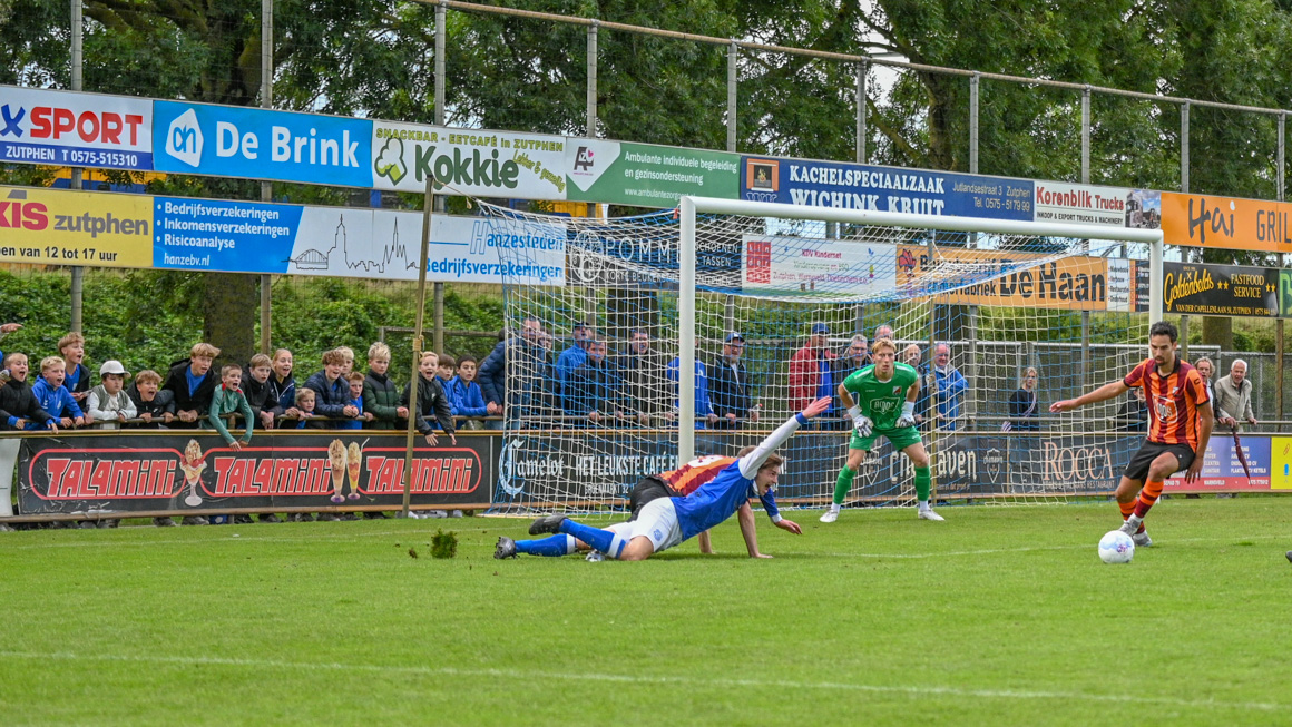 In de laatste ronde van de bekercompetitie stond er een onvervalste stadsderby op het programma. Een mooi meetmoment voor beide formaties en generale repetitie voor de competitiestart. Veel Zutphense voetballiefhebbers waren op de clash tussen blauwwit en oranjerood afgekomen en kregen hier geen spijt van.